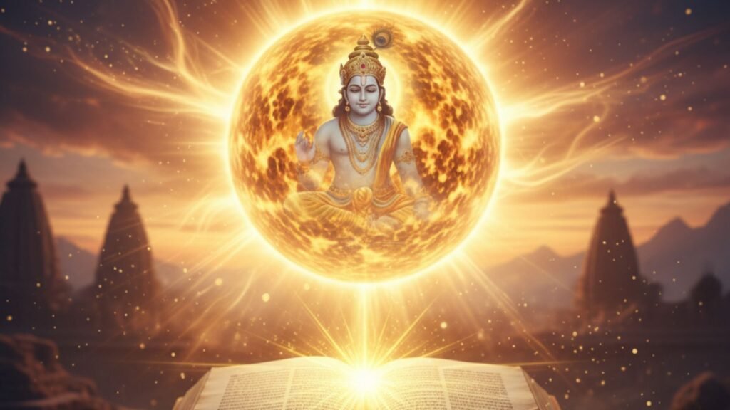 This verse reveals that spiritual wisdom first emerged from the Sun, representing the eternal source of knowledge and light. Sun worship in Hinduism thus becomes more than ritual — it becomes a reminder that divinity shines within every being.