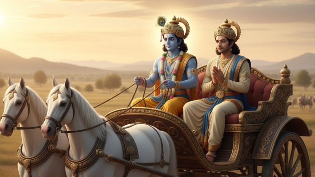 Bhagavad Gita philosophy is the spiritual and practical wisdom given by Lord Krishna to Arjuna during the Kurukshetra war. It combines spiritual insight with real-life guidance.
